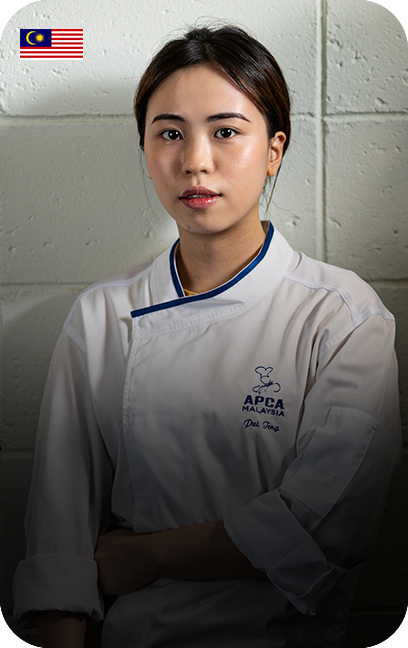 Chef Pui Teng is a professional chef with more than 7 years of pastry experience and has extensive experience in French pastry and sugar display. She has recently won the Asia Pastry Cup in December 2022 and, represented the Malaysian team that ranked 6th in the Coupe Du Monde De La Patisserie 2023 in Lyon, together with her team member Chef Charles. Both of these chefs are representatives of APCA. They have also won the Best Taste award at the Asia Pastry Cup 2022. She believes that being a chef allows her to be more creative.
